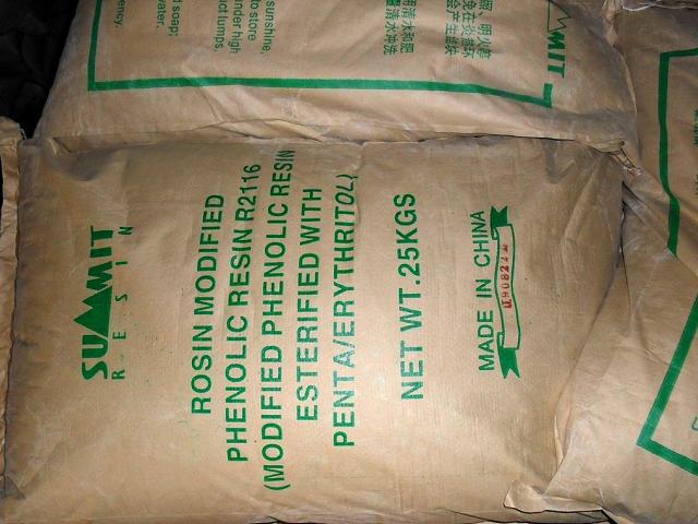 Rosin Modified Phenolic Resin is the vacuum treated product of esterification of polyhydric acid with the polycondensate of rosin, phenol or bisphenol A and formaldehyde. It dissolves in tar, ester, gum turpentine and similar solvents, partly in petroleum products but not in alcohol solvents. It melts and mixes well with vegetable oils and features high softening point and fast drying. | ||||||||||||||||||||||||||